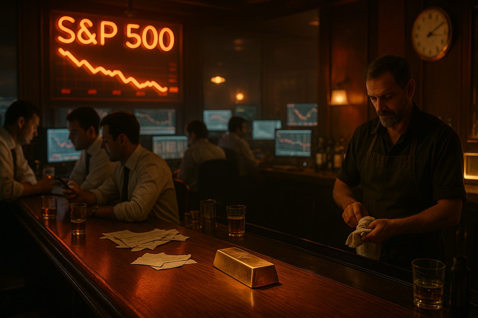 The melt-up finally blinked. After a series of all-time highs spurred calls for a breather amid signs of buyer exhaustion, the S&P 500 began to feel like a bar that had stayed open far too long. It was 3 a.m. on Wall Street — lights low, laughter loud, traders still ordering one more round even as the bartender started wiping the counter. Everyone knows that feeling: the night’s been good, the profits better, and you convince yourself one more drink won’t hurt. It always feels like the smart choice to stay — until the lights come up and you realize the hangover’s already waiting outside.