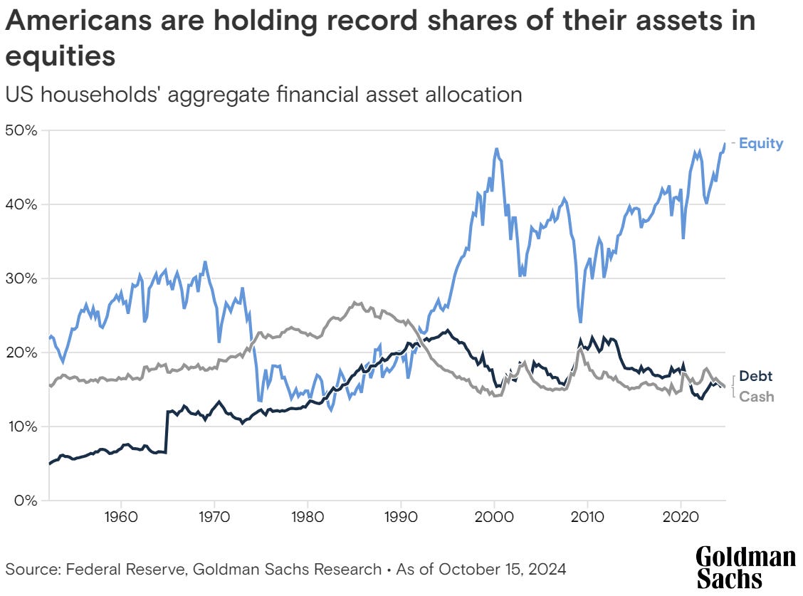 With equity allocations far above the long-term median of 28%, households seem to be feeling the market’s pull. “Historically, households flock to equities during times of robust economic growth,” notes David Kostin, Chief U.S. Equity Strategist at Goldman Sachs Research. And with U.S. GDP growth averaging 2.9% in 2023 and holding at 3.0% for the first half of 2024, the economy has toggled between recession jitters and growth optimism, making this a fascinating moment for market positioning.