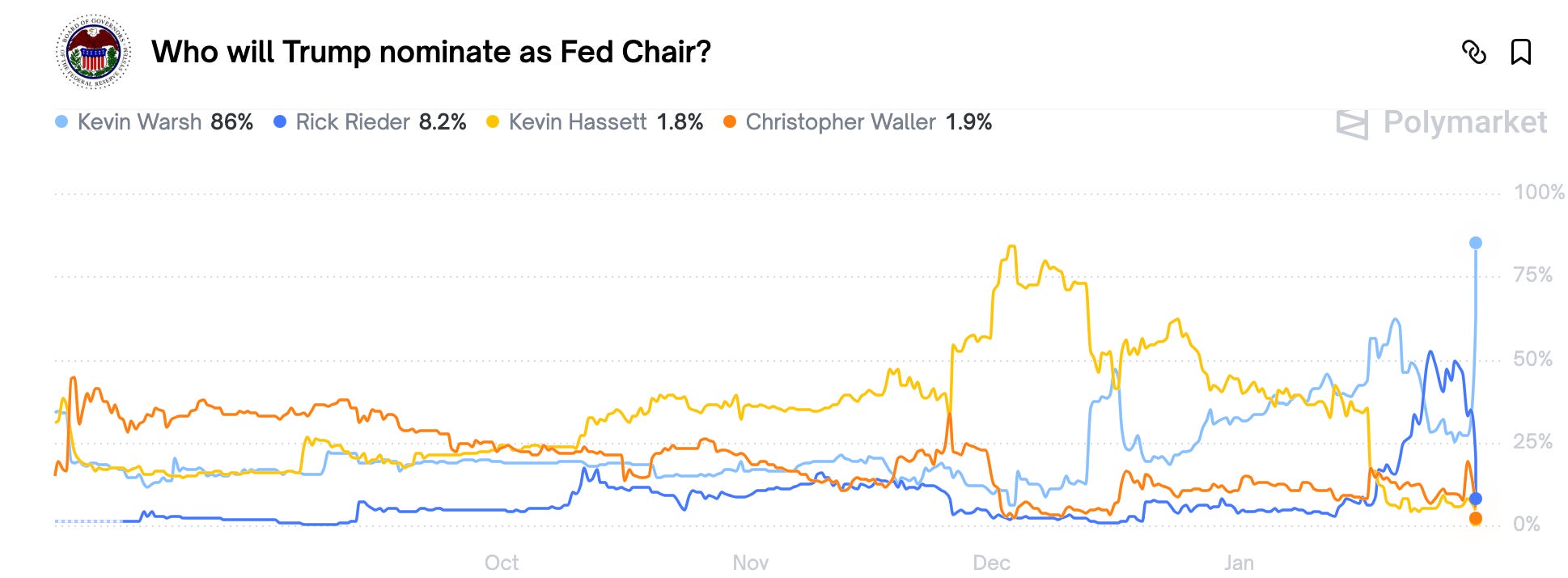 When Trump said the pick would not be surprising and that it was someone who could have been there a few years ago, the market already filled in the blank. There was no mystery drumroll here, no plot twist, no institutional melodrama. The reaction was closer to a knowing nod than a gasp.